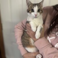 Aria is a gentle, pastel calico who loves sunshine, soft pets, and peaceful companionship—ready to share her quiet love. Benjamin Button is a wise-eyed, playful tabby kitten with an old soul, endless curiosity, and heart-melting charm. Princess Charlotte, playful and curious, loves adventures with siblings Louis and George, yet melts into cuddles—royalty ready for adoption.