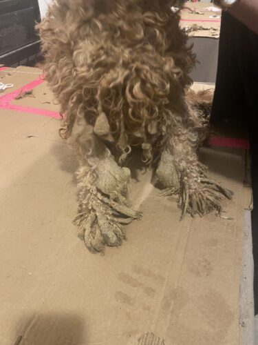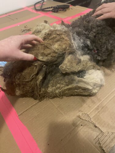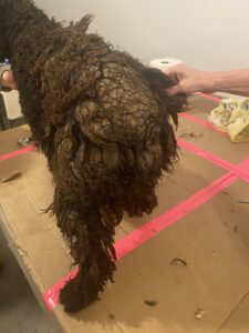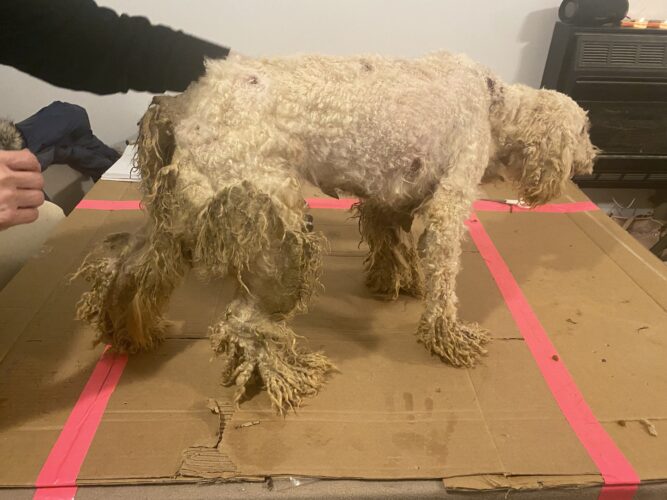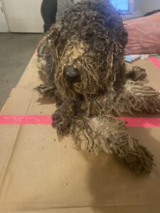 The investigation began after reports surfaced of dogs being kept in inhumane and dangerous conditions. When authorities and rescue groups arrived at the property, they found 14 adult dogs and five puppies living in filth, surrounded by waste, ammonia fumes, and darkness. Many of the dogs were severely matted, emaciated, suffering from eye infections, open wounds, respiratory distress, and other untreated medical issues. Some were so matted that their fur hid just how thin they truly were—several received a body condition score of 1, the lowest possible score before death.