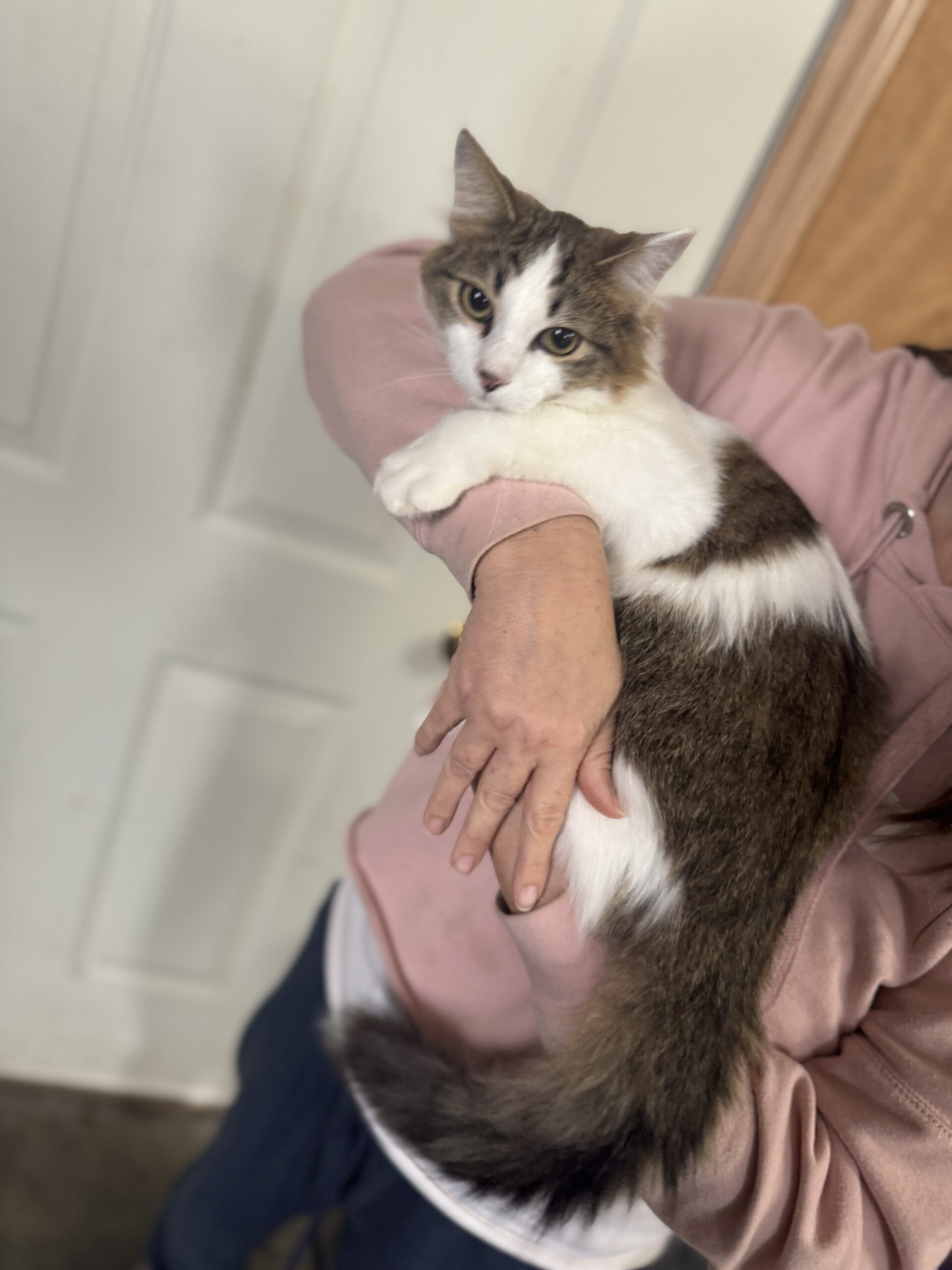 This regal kitty isn’t just about looks—he’s affectionate, playful, and endlessly curious. Whether he’s stretching luxuriously in a sunny window, investigating every nook and cranny, or curling up for a cozy nap in your lap, George exudes warmth and companionship at every turn.